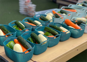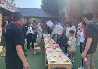 赛前准备 物品摆放整整齐齐。爸爸们大显身手,孩子们还准备了特别的蔬菜花束。