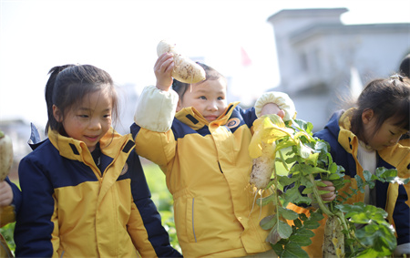 迎着初冬温暖和煦的阳光,金色摇篮的老师和孩子们行走在田间地头,与泥土亲昵接触,体验拔萝卜的乐趣,小朋友们在老师的指导下,弯下腰,用小手攥住萝卜叶子的根部使劲一拔,萝卜便从地里被拔出来了,这份农事体验带给孩子的不仅只是萝卜被拔出那一瞬间的快乐体验,更多的是一点一滴的生活积累,在整个过程中不仅了解了萝卜的生长过程,也感受着大自然的馈赠,收获一份快乐与成长!
